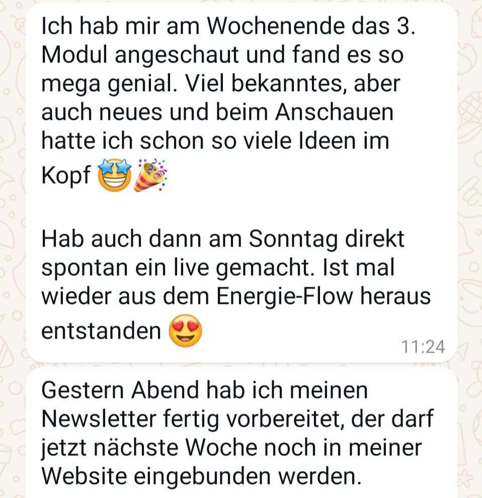 Anstatt herumzueiern, hast Du eine klare Strategie, die Dich in die Umsetzung bringt. Du erlebst die Freude, wenn Deine Ideen in echtes Wachstum und Einnahmen umgesetzt werden.