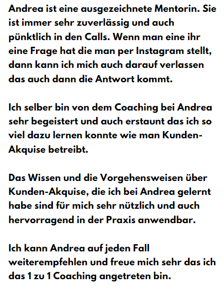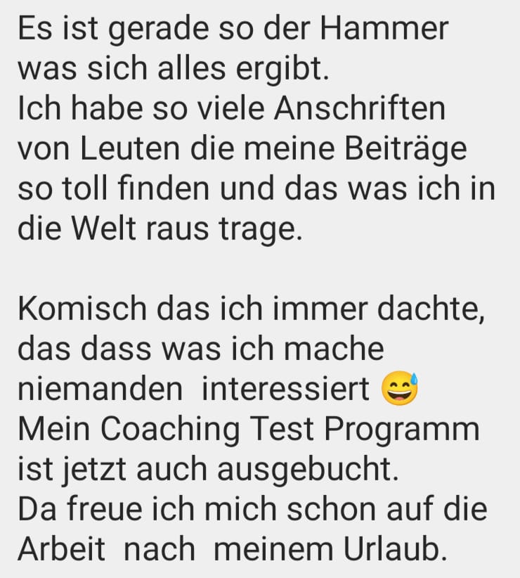Wenn Du die Inhalte der 3 Monate konsequent umsetzt, ist es keine Frage mehr, ob Du Kunden gewinnst – sondern nur noch wann und wie viele. Der Kundengewinnung steht dann nichts mehr im Weg!