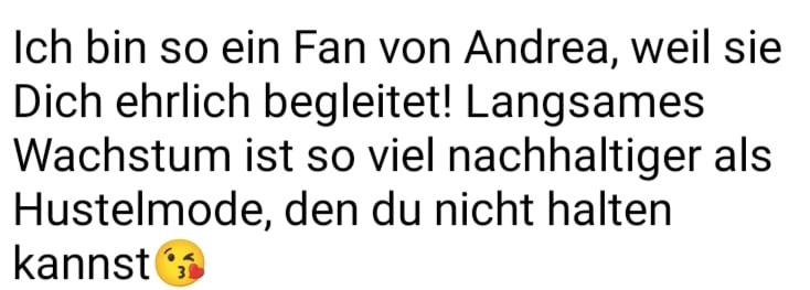 Du bekommst Antworten und nicht noch mehr Chaos. Du wirst Stabilität und Ruhe in deine persönliche Businessreise bekommen – denn obwohl wir am liebsten alle schon morgen am Ziel wären, gilt es, ein Tempo zu finden, bei dem du Lust anstatt Frust empfindest. Business ist ein Marathon und kein Sprint.*