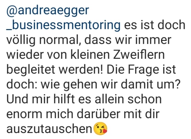 Aber was wäre, wenn Du es tatsächlich tust? Du vertraust mir und dem Plan. Wenn Du jedoch schon nach einer Woche demotiviert aufgibst, zweifelst Du nicht nur am Plan, sondern auch an mir als Deiner Mentorin.
