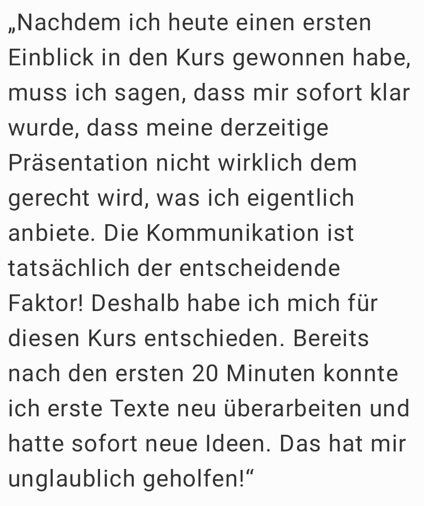 Du verstehst, wer Deine idealen KundInnen sind und wie Du ihre Probleme löst – und das führt zu Anfragen, die direkt in Umsatz umgewandelt werden.