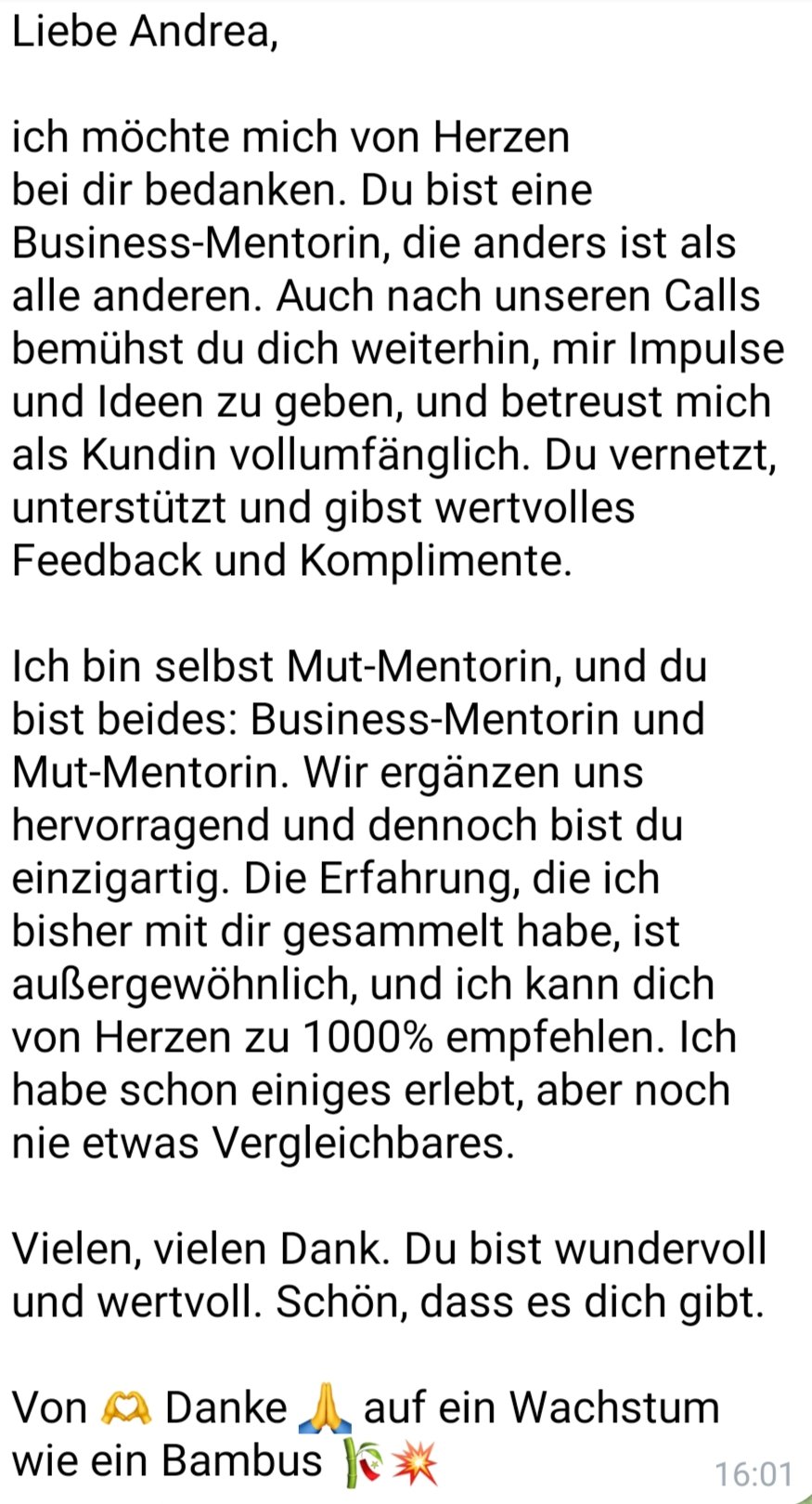 Von Frauen und Männern, die mit mir gearbeitet haben – und mich als Businessmentorin erlebt haben.
