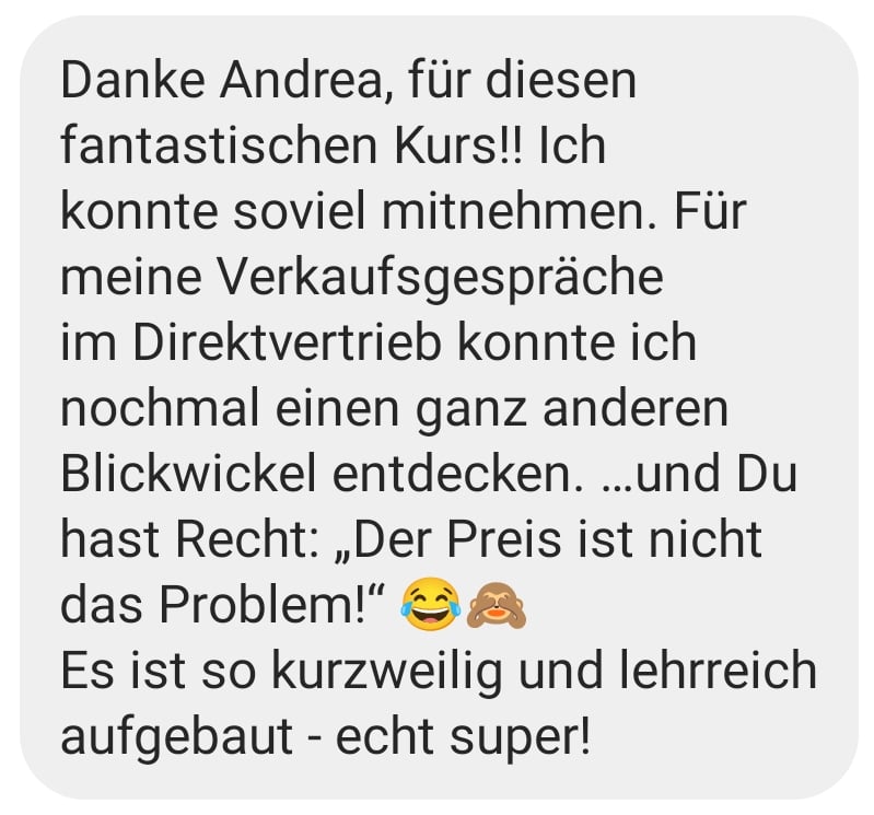Der Preis ist nie das Problem inkl. wenn der Kunde sagt "ich habe kein Geld" - es liegt immer an der Kommunikation.